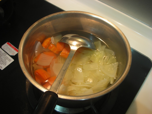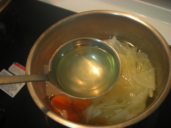 媽咪這次幫宣卉作的是綜合蔬菜高湯....材料有高麗菜,洋蔥跟紅蘿蔔!很常用來熬高湯的三樣材料.....