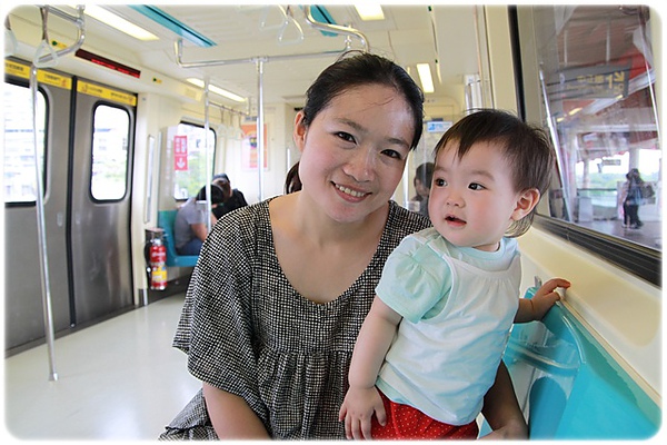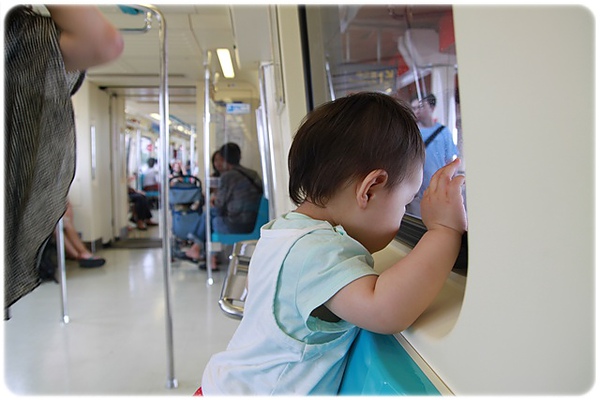 皮很大2:第一次坐捷運~~但是很不安分!硬是要自己站在位置上~~拍窗戶看外面!