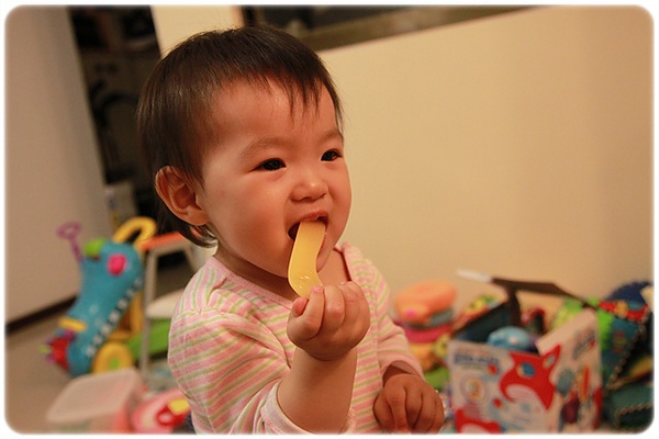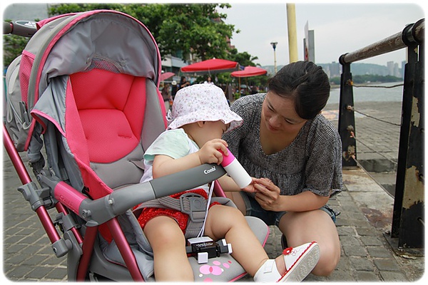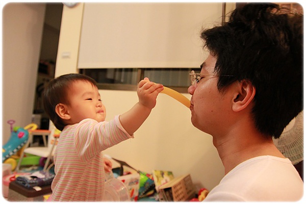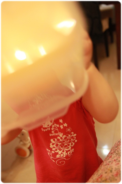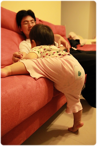 不給是不行的~~但是都要顧著免得她掉把東西下去....