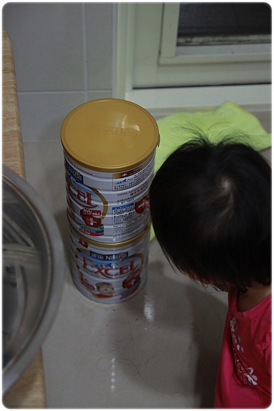 皮很大7:很愛疊高高....奶粉罐就這樣被她堆起來玩!