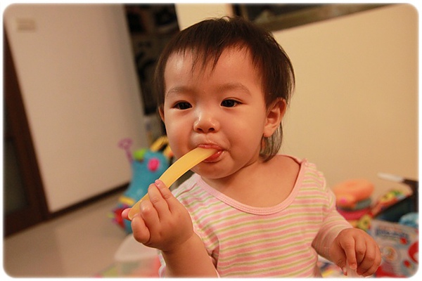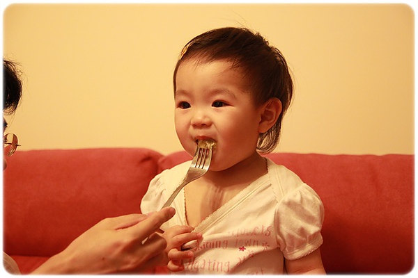 卉卉一歲三個月了~~很愛吃水果!