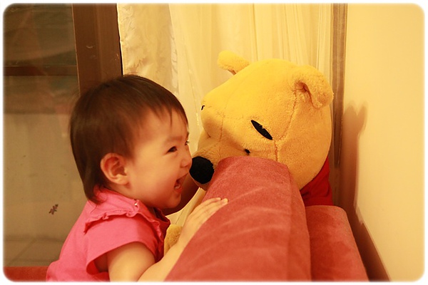 皮很大9:愛在沙發上奔跑~~Kiss維尼!(不過都是咬維尼的鼻子啦~~)