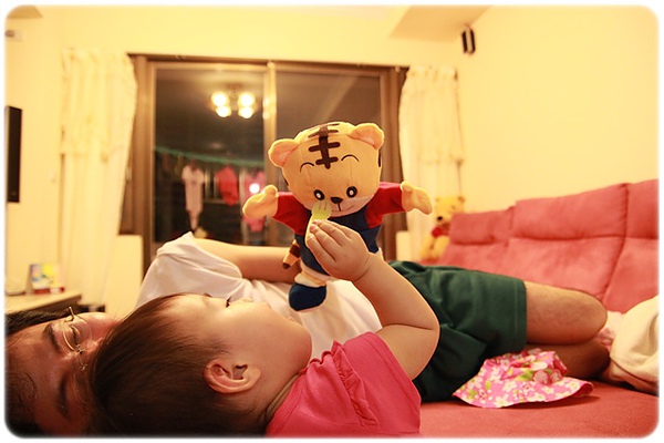 巧虎也要吃~~卉卉自己還會一起張大嘴巴!