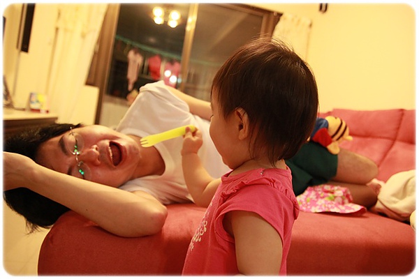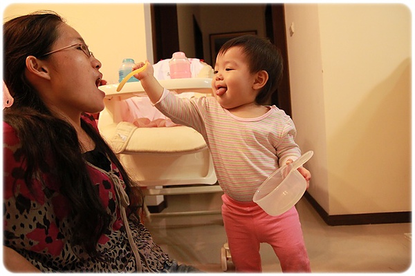 卉爸在旁邊說"餵媽媽"!害我也要配合演出....
