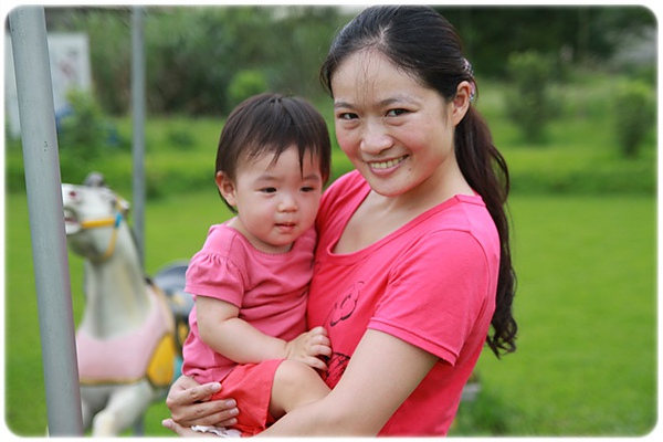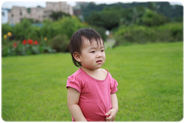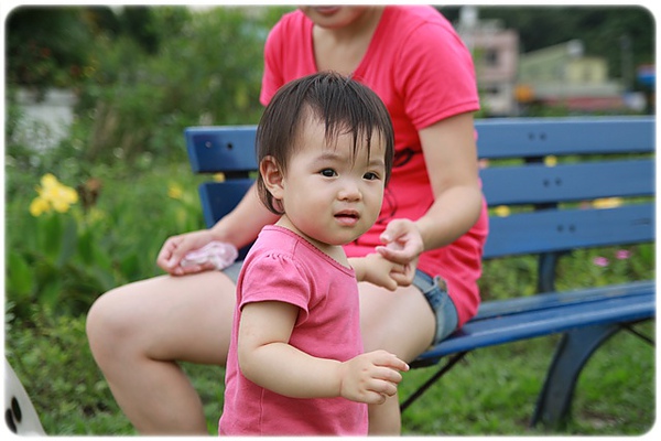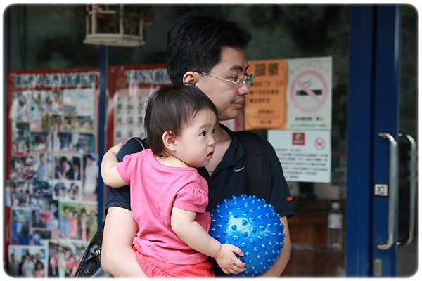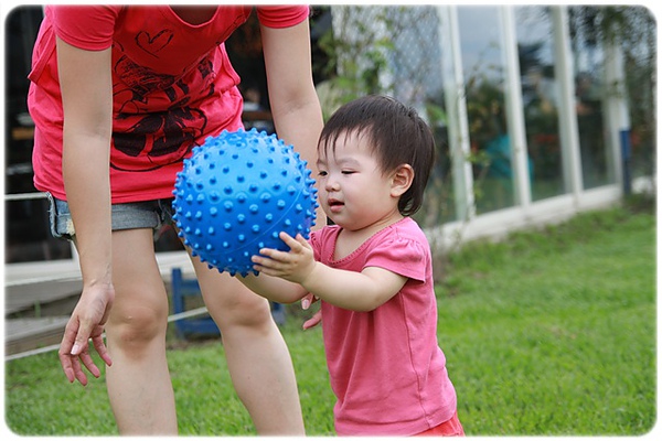 丟不遠,又撿起來~~這時,旁邊有一個漂亮的小姐姐在看著卉卉的球!