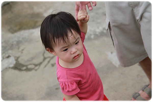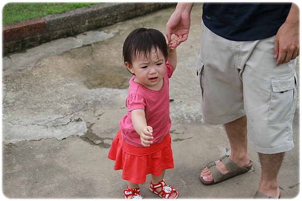 結果姐姐撿起來:卉卉急著跑去搶回來~~