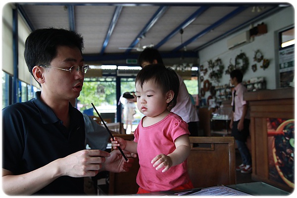 先跟服務生要來兒童椅,讓卉卉乖乖坐在上面,準備吃飯!