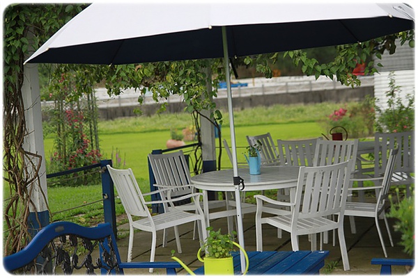 可愛的風車和狗狗~~配上藍色的椅子!藍白的裝飾,我覺得很容易受到大家的歡迎~~