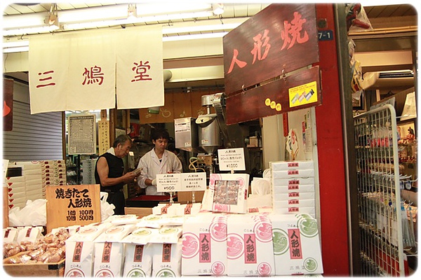 老公說這家是有名的:木村家的人形燒!商店街的入口就有了...但是我們一開始沒買啦!