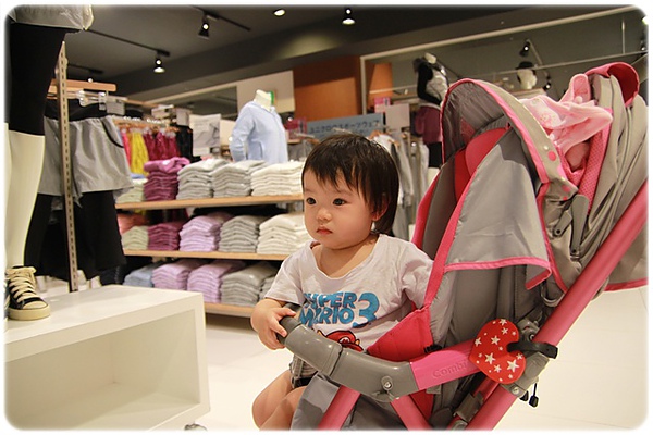 這個臭卉卉,因為坐不太住。所以媽媽我趕緊拿一些確定要購買的東西(還不就是她的內搭和襪套),給她玩玩....