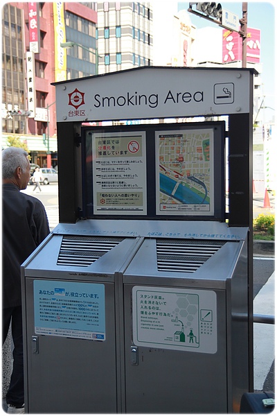 日本街頭,都會有這樣的Smoking Area~~就可以看到一堆人,圍著這個桶子猛抽菸!