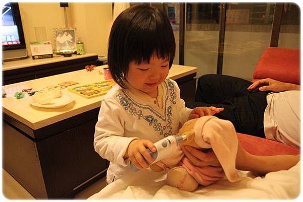對了,東西會分的很清楚!吸塵器是媽媽的,所以卉爸拿著要吸地板的話~~臭小孩大哭,說這是媽媽的!