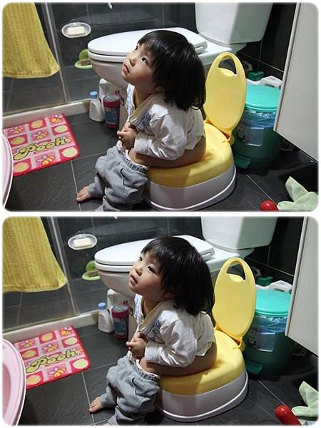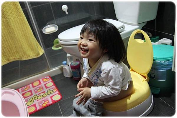 本月,買了鴨鴨小馬桶給卉卉~~因為保母說她肯接受作在小馬桶上尿尿!