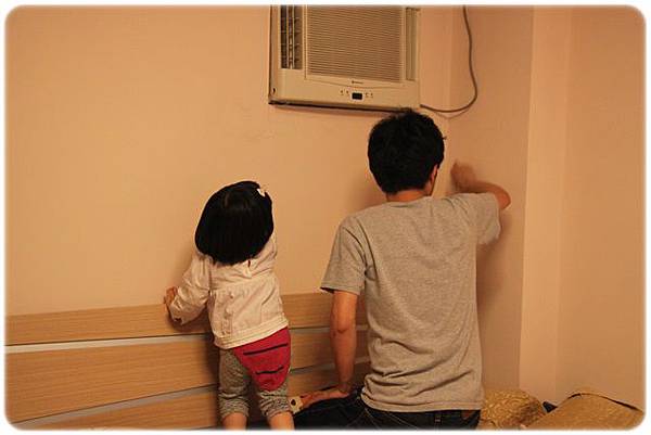 看爸爸在擦牆壁,也過去拿一張面紙擦~~