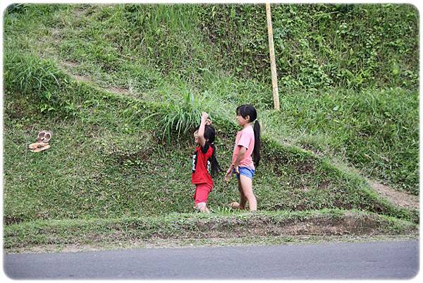 一旁的小山溝,還有當地的小孩在旁邊嬉戲~~