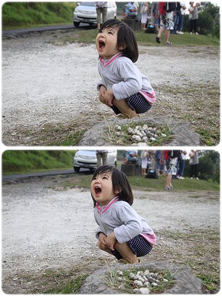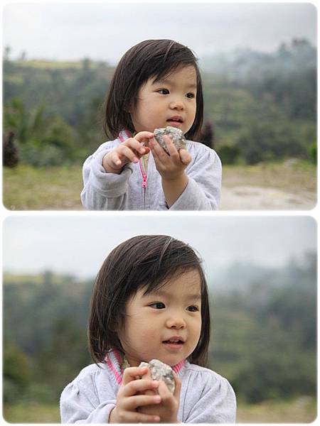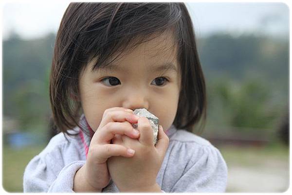 抓卉卉來照,看到她手上還緊抓著石頭吧!