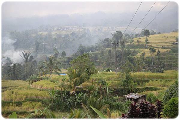 仔細看,遠方的梯田上面,都有一個ㄧ個村落的聚集,伴隨著裊裊的炊煙.....