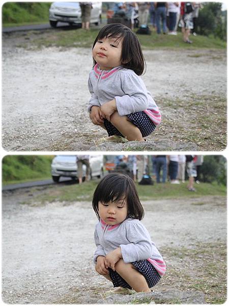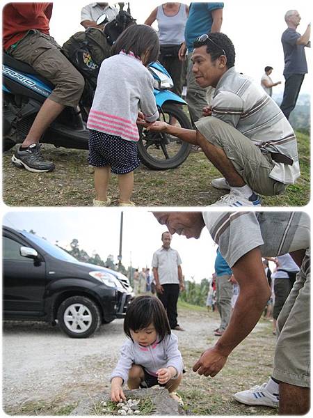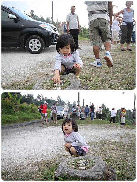 跟爸爸拍拍,似乎還是在看她的石頭~~