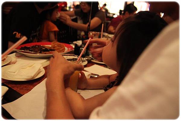 上面這張圖,是卉卉一進餐廳,迫不及待的喝起柳橙汁XD!