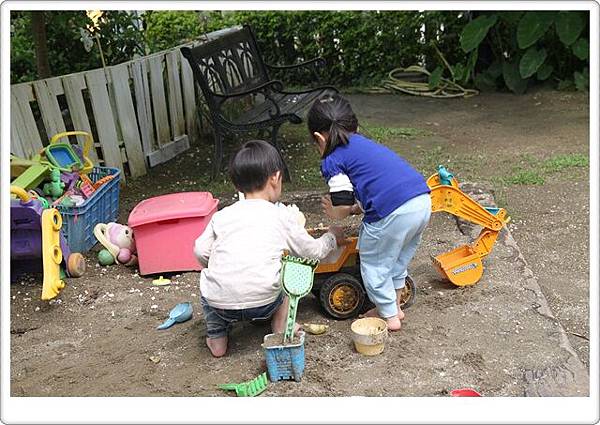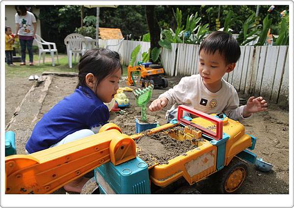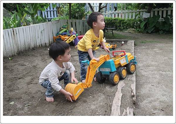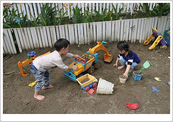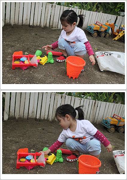 挖砂區~~~看別人的部落格,覺得挖砂區的玩具很多,還有大挖土機和車車!