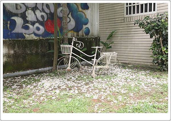 角落的油桐樹~~花都被雨滴打落在地上了!