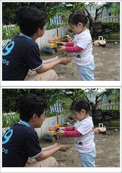 找爸爸陪挖砂~~~卉卉最近喜歡用手抓!