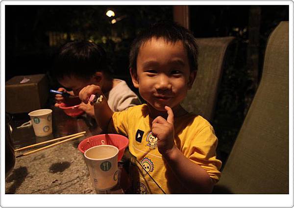 這晚的重頭戲就是讓小孩看螢火蟲~~~在農莊裡,工作人員會一批一批的帶客人稍微往裡面走一點....