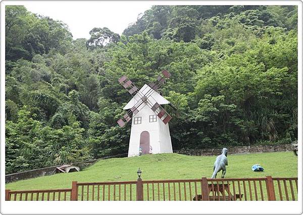 一停好車,就可以看到這個風車跟幾隻恐龍的擺設....