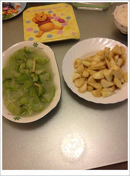 加上兩樣簡單的菜:一條超長的絲瓜,清炒筊白筍.....