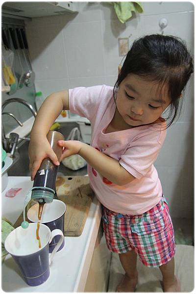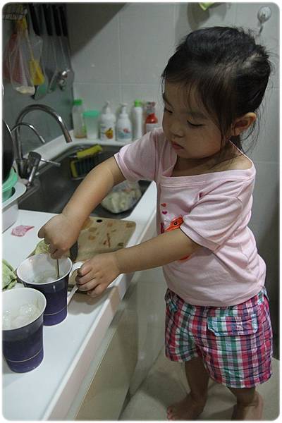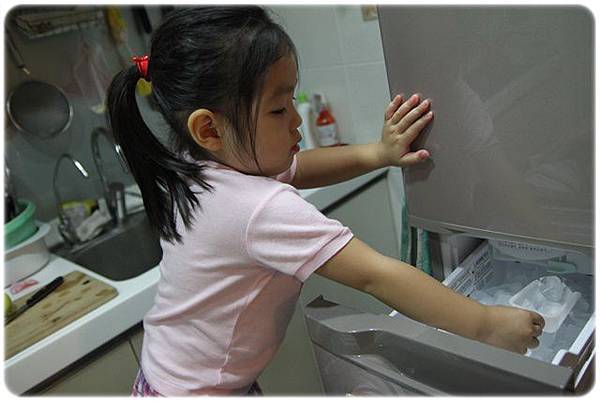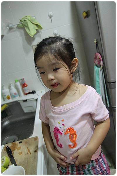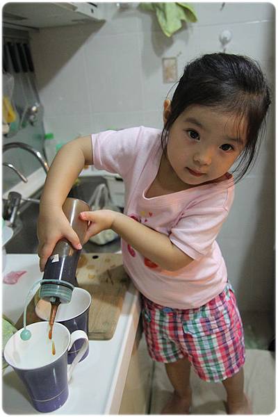 喝玩東西,吃玩水果,會想幫忙把杯子盤子拿到廚房給爸爸洗.....