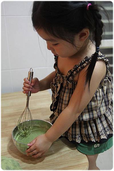 (製作抹茶冰淇淋當中~~冰淇淋材料,請動手連到旁邊凱媽代購!噗噗~~工商一下!)