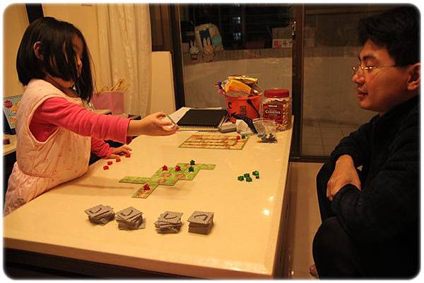 但是,如果她覺得某塊圈起來的塊地應該是她的,就會玩到生氣得哭起來!!不肯讓別人放上小人佔領....