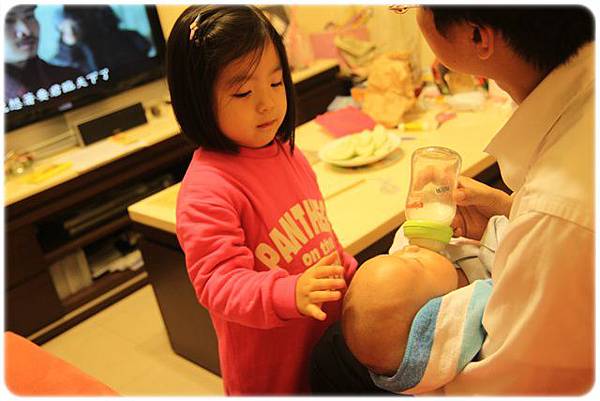 等媽媽洗完奶瓶發現小孩居然還在講話,進去罵了一下,才會乖乖安靜!