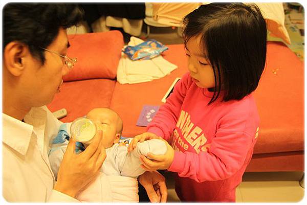 偶而,現在知道媽媽要洗奶瓶,會說,陪我一下,然後,過一下就說媽媽你去洗奶瓶!