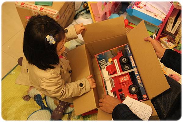 (卉卉的耶誕禮物是ㄧ台消防車,媽媽問了好幾天才跟我說的!!)
