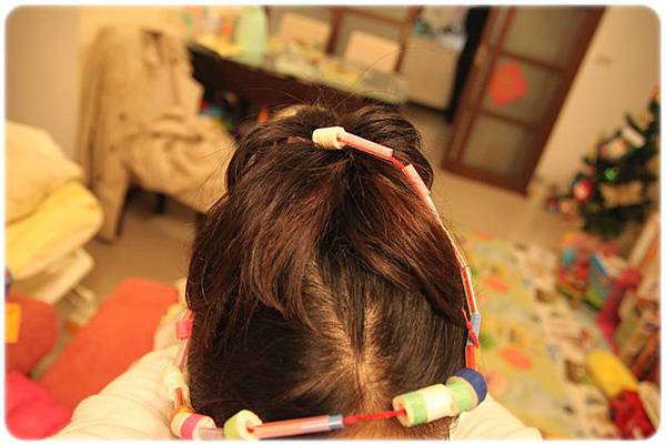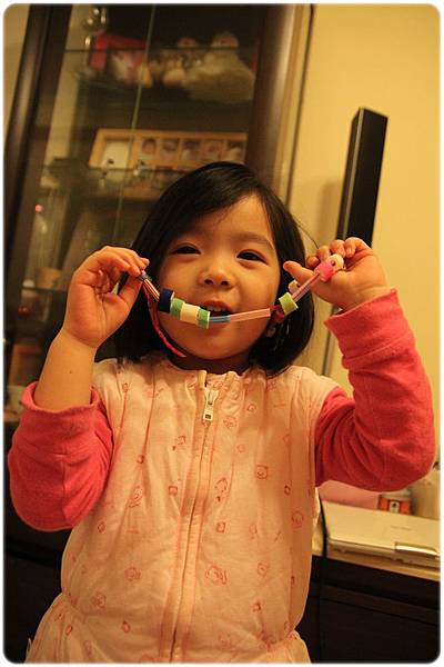 (硬要把項鍊帶在媽媽的頭上,說下次出去要這樣戴漂亮XD.....)