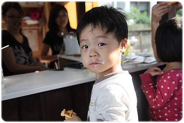 卉卉開心的邀請凱凱也過來!坐在這裡吃鬆餅,好不愜意....