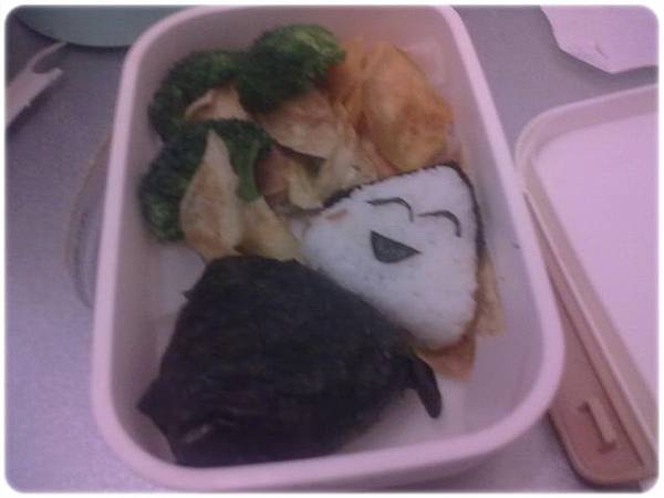 後來覺得太單調,隨意用海苔剪了眼睛和嘴巴放上!