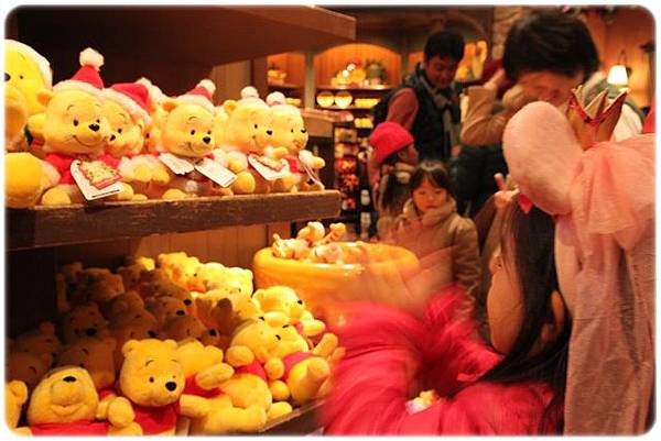 玩完,當然就是賣店!賣店裡的東西好可愛~~~卉卉正在拍拍手,那個維尼就會發出聲音動來動去!