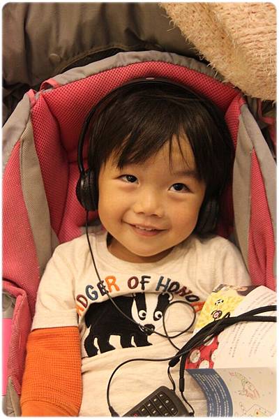 只是這小孩,看到姐姐有,就一直該該叫,所以,當我們看到的畫不需要導覽機時,